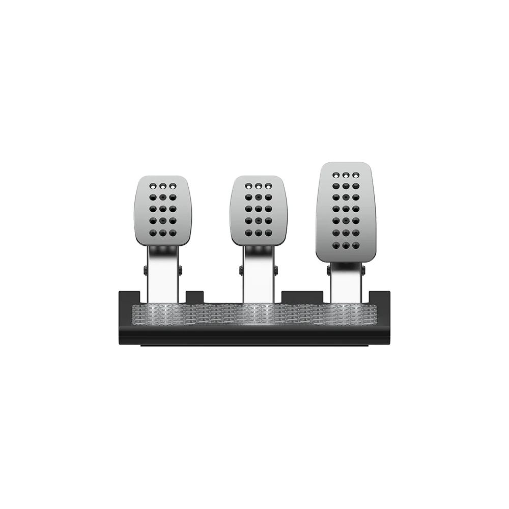 The fully adjustable aluminum pedal set can be adapted to the type of car you are using for ultimate racing immersion. Fine tune the throttle, brake and clutch pedal resistance and throw distance to match your preferred car. Plus, an integrated clutch pedal is ideal for stick shift driving. or if you prefer to use the clutch paddles on the wheel, the clutch pedal can be lowered and the brake pedal can be adjusted left-to-right to give more space between brake and throttle control.