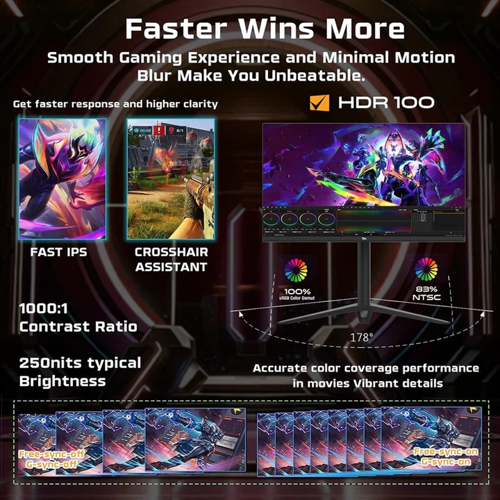 Enjoy lifelike colors and crisp clarity with the Full HD resolution and a vibrant HDR 100 IPS panel.