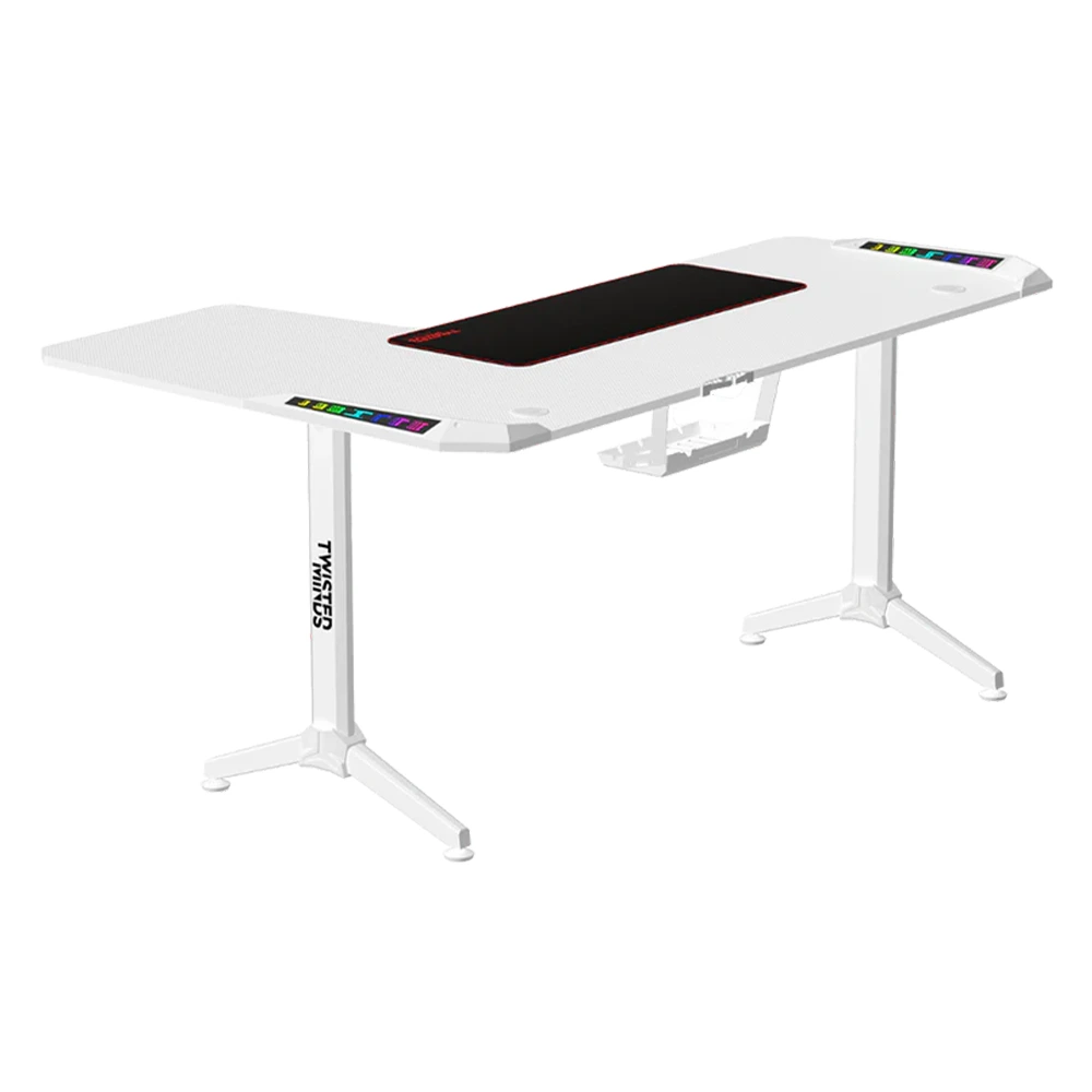 Twisted Minds WARRIOR L Shaped Gaming Desk RGB Right White – TM-Y-RW-RGB