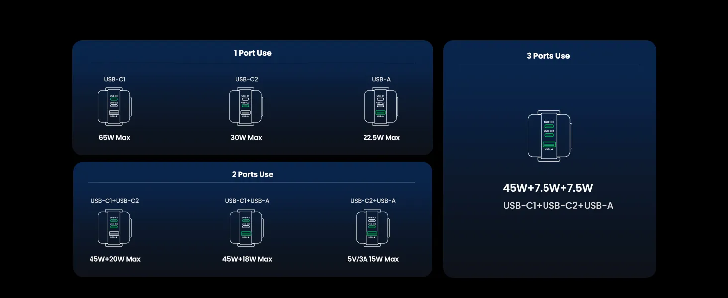 • One Charger for Everything: With 2 USB C ports and 1 USB A port, our charger is compatible with various devices.