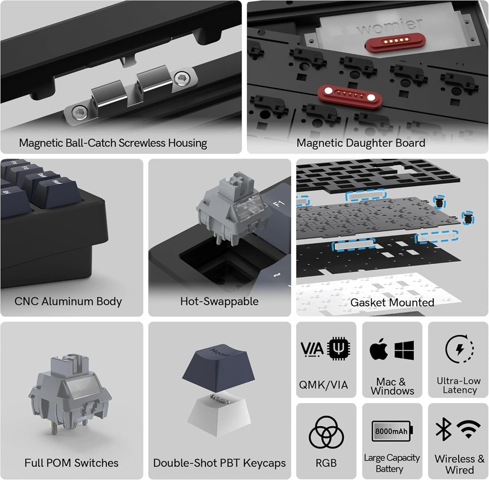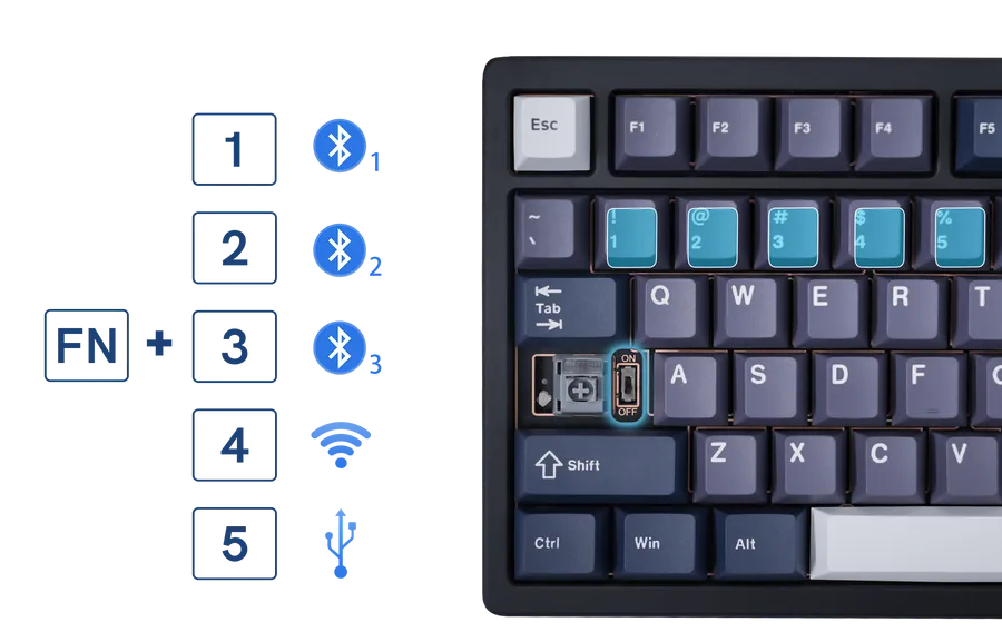 The RD75 features versatile connectivity options, supporting easy transitions between wired, Bluetooth, and 2.4 GHz wireless modes. Whether you use Windows, Mac, or other devices, this QMK compatible keyboard provides excellent performance, ensuring a smooth, hassle-free experience.