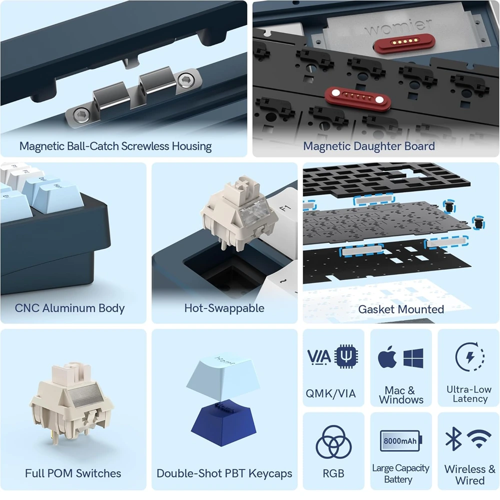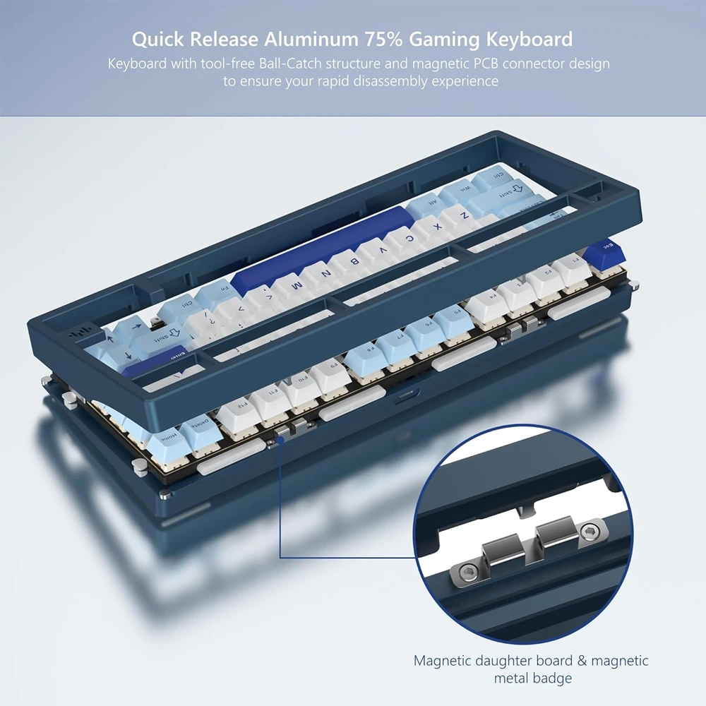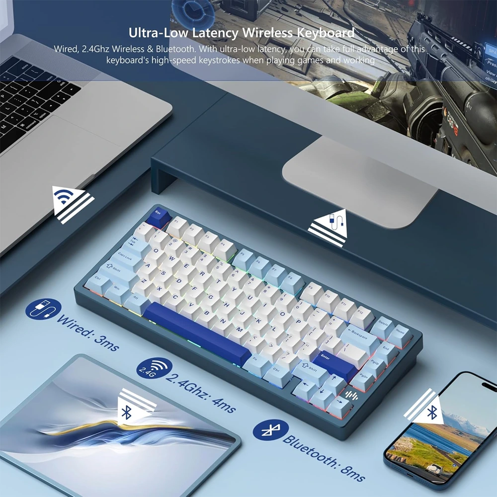 The RD75 features versatile connectivity options, supporting easy transitions between wired, Bluetooth, and 2.4 GHz wireless modes. Whether you use Windows, Mac, or other devices, this QMK compatible keyboard provides excellent performance, ensuring a smooth, hassle-free experience.