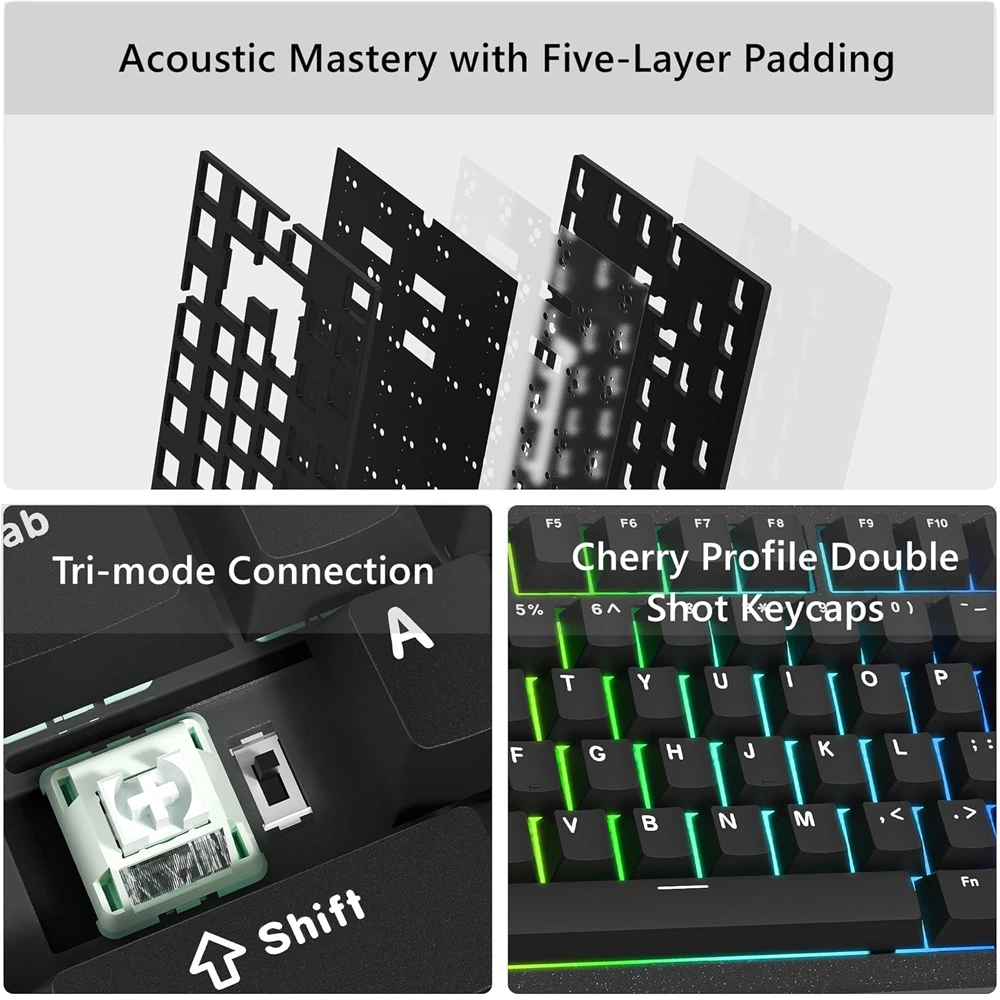 • Hi-Fi Typing Sound: Five-layer sound-dampening design (including PORON foam, IXPE pad, and PET layers) delivers crisp, satisfying keystrokes.
