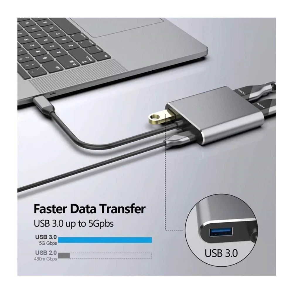 Upgrade your workspace with this sleek and powerful USB-C Hub, designed for maximum connectivity and performance. With a compact body and premium aluminum finish in Silver or Space Grey, this 4-in-1 docking station is the perfect companion for your laptop or MacBook.